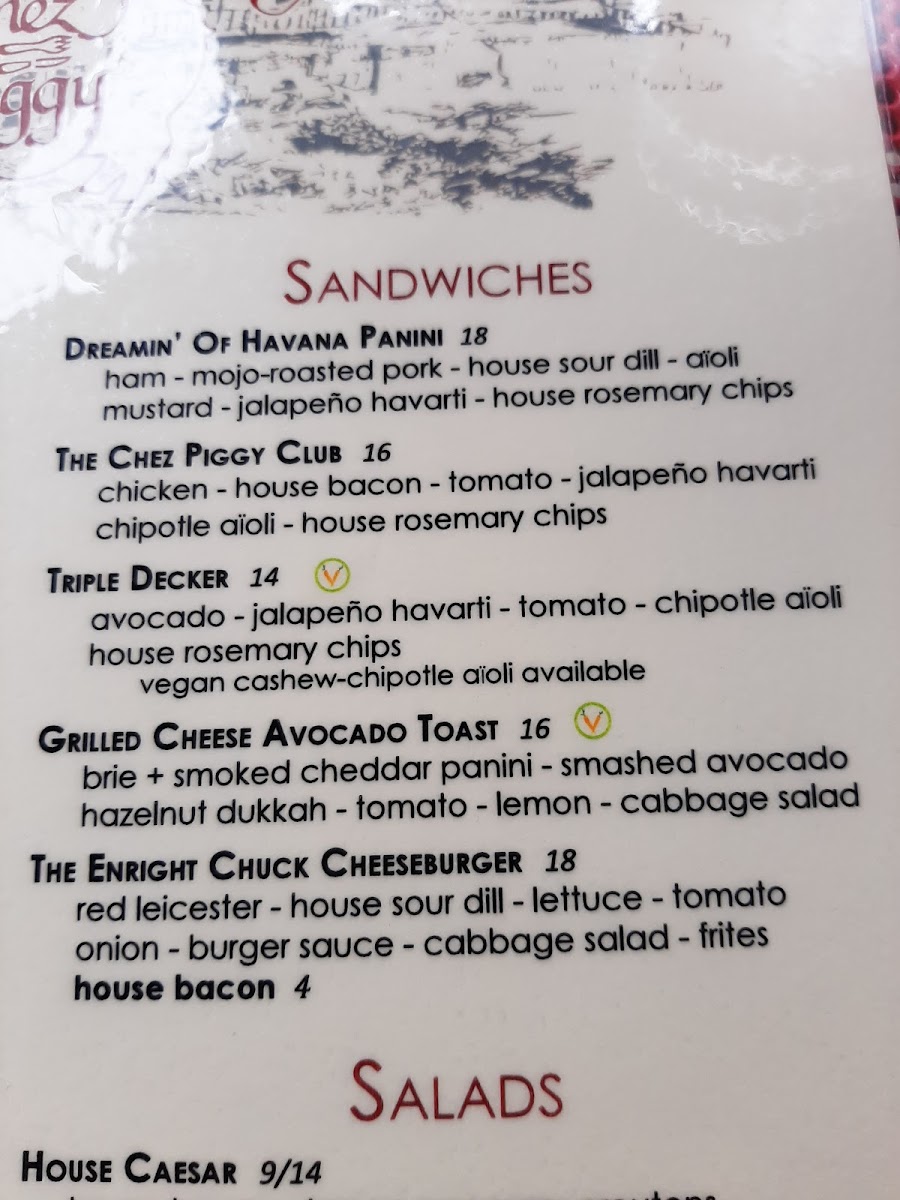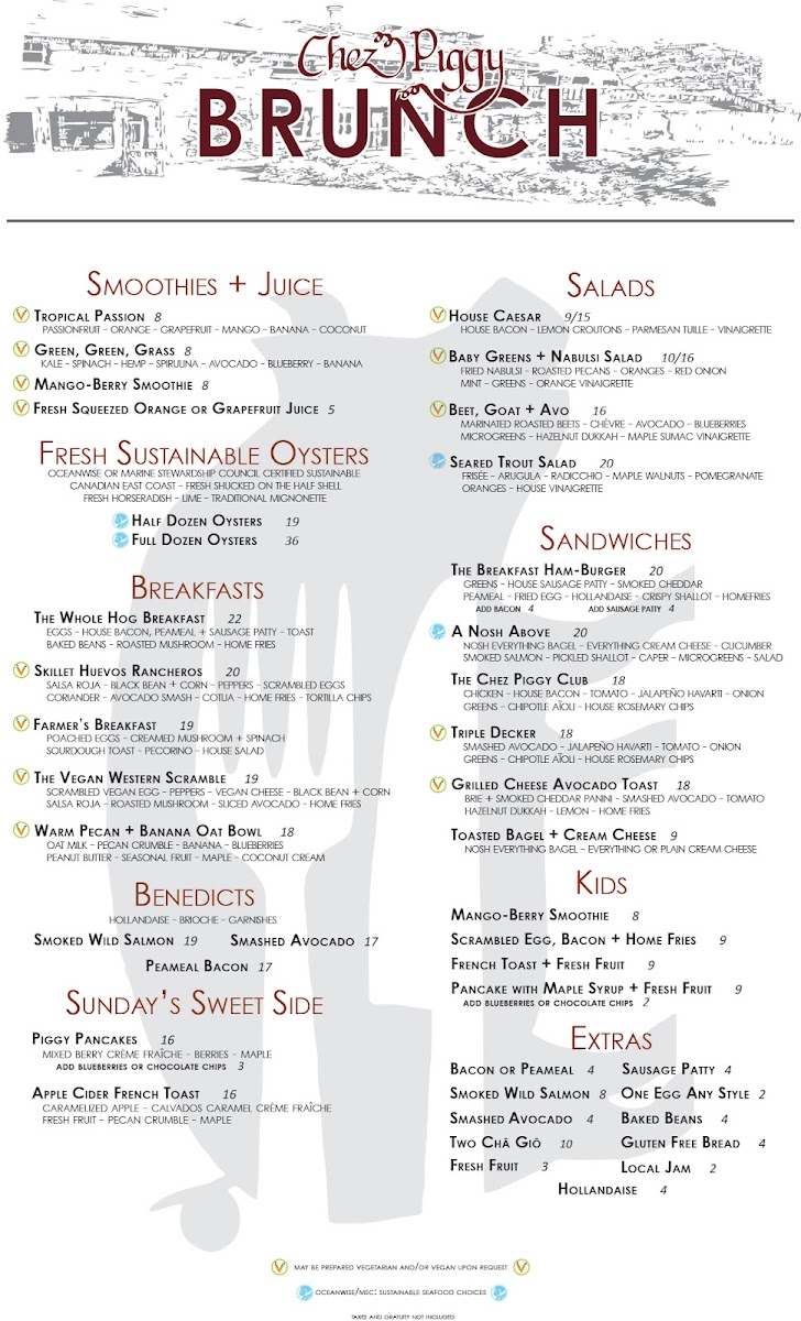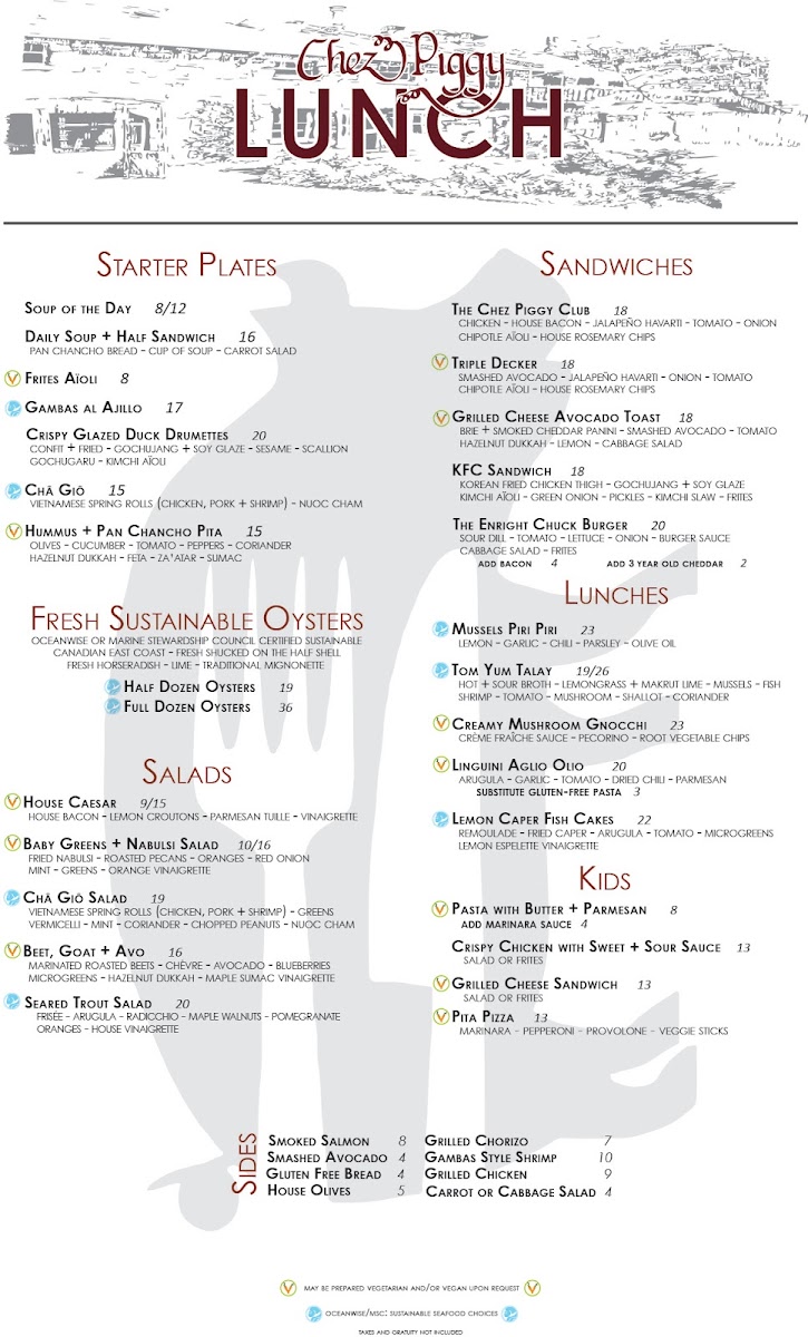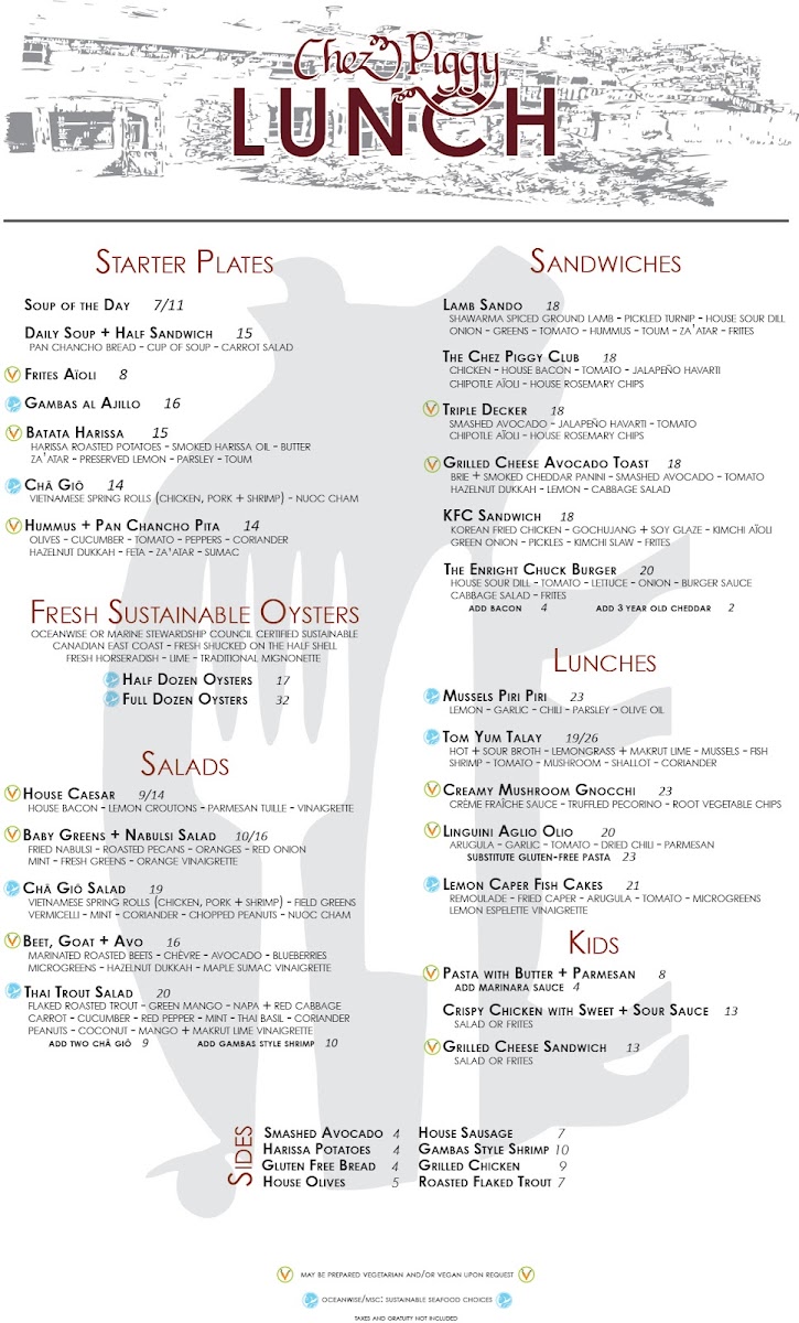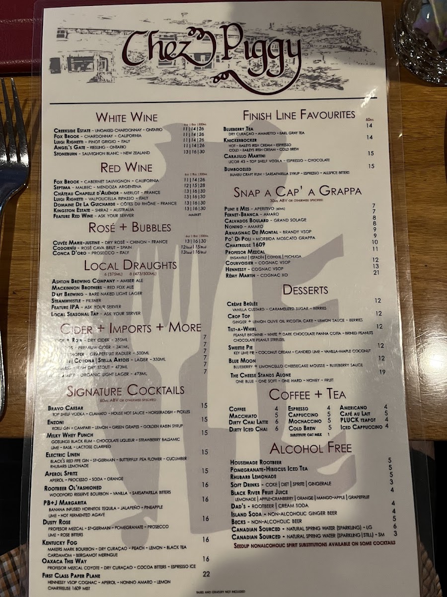 Chez Piggy Restaurant & Bar Menu (2025 Update)